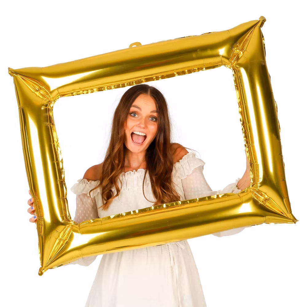 Uppblåsbar fotoram i folieguld 68x83 cm. Perfekt till fest, bröllop och student. Ta roliga bilder och skapa glammiga minnen med vänner!