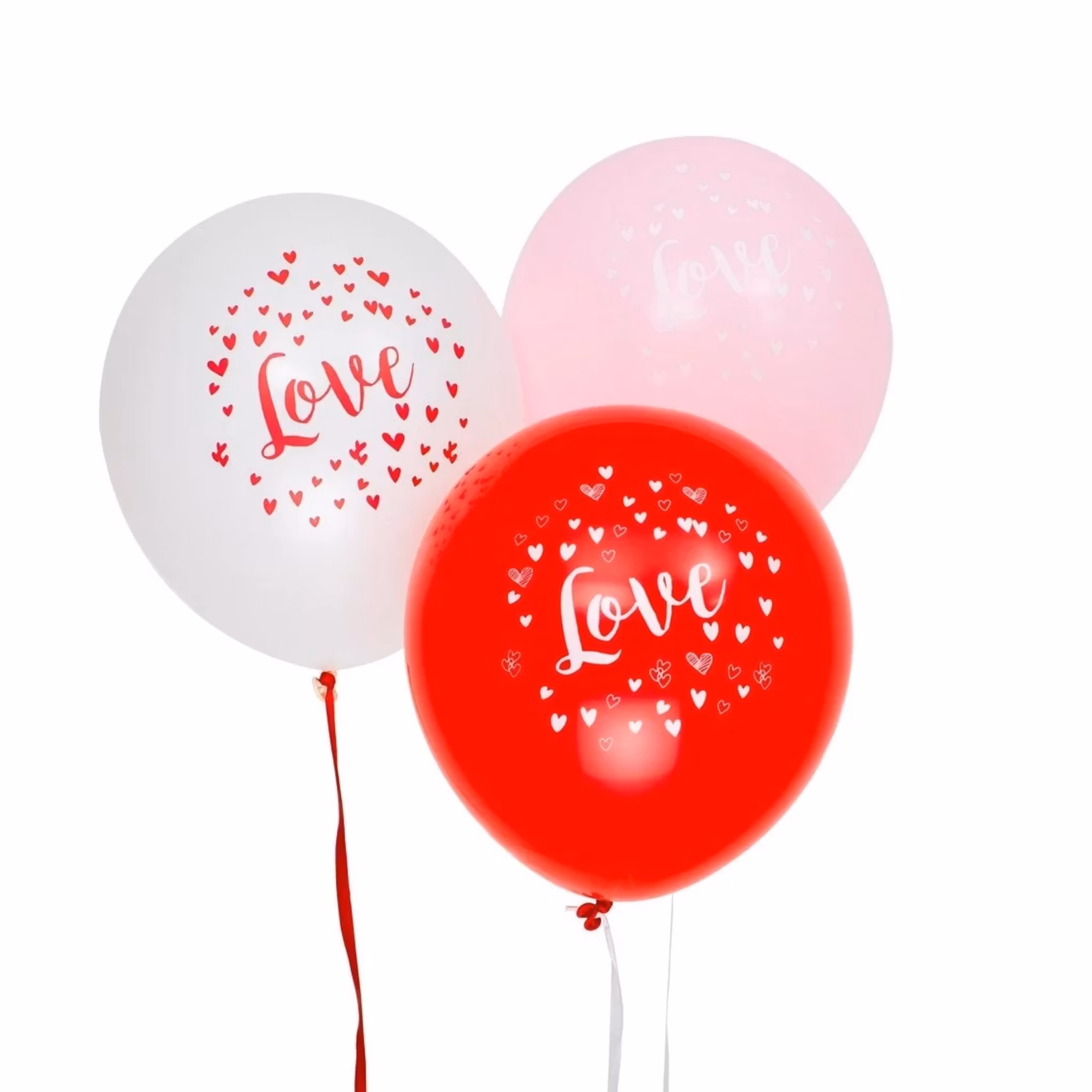 Ballonger 30 cm med texten Love. 6 st röda, rosa och vita ballonger som passar perfekt till bröllop, Alla hjärtans dag och romantiska firanden.