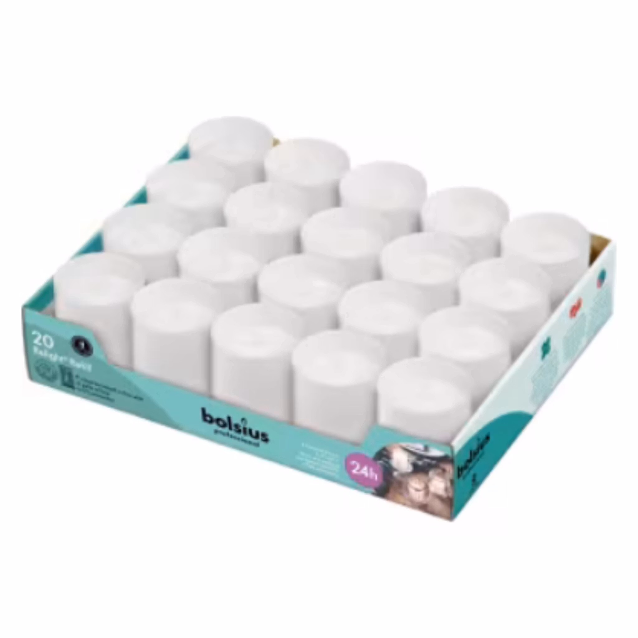 Relight-ljus i 20-pack från Bolsius. Välj mellan rosa, röd och vit. Sotfria med lång brinntid – perfekta för middagar, högtider och vardagsmys.