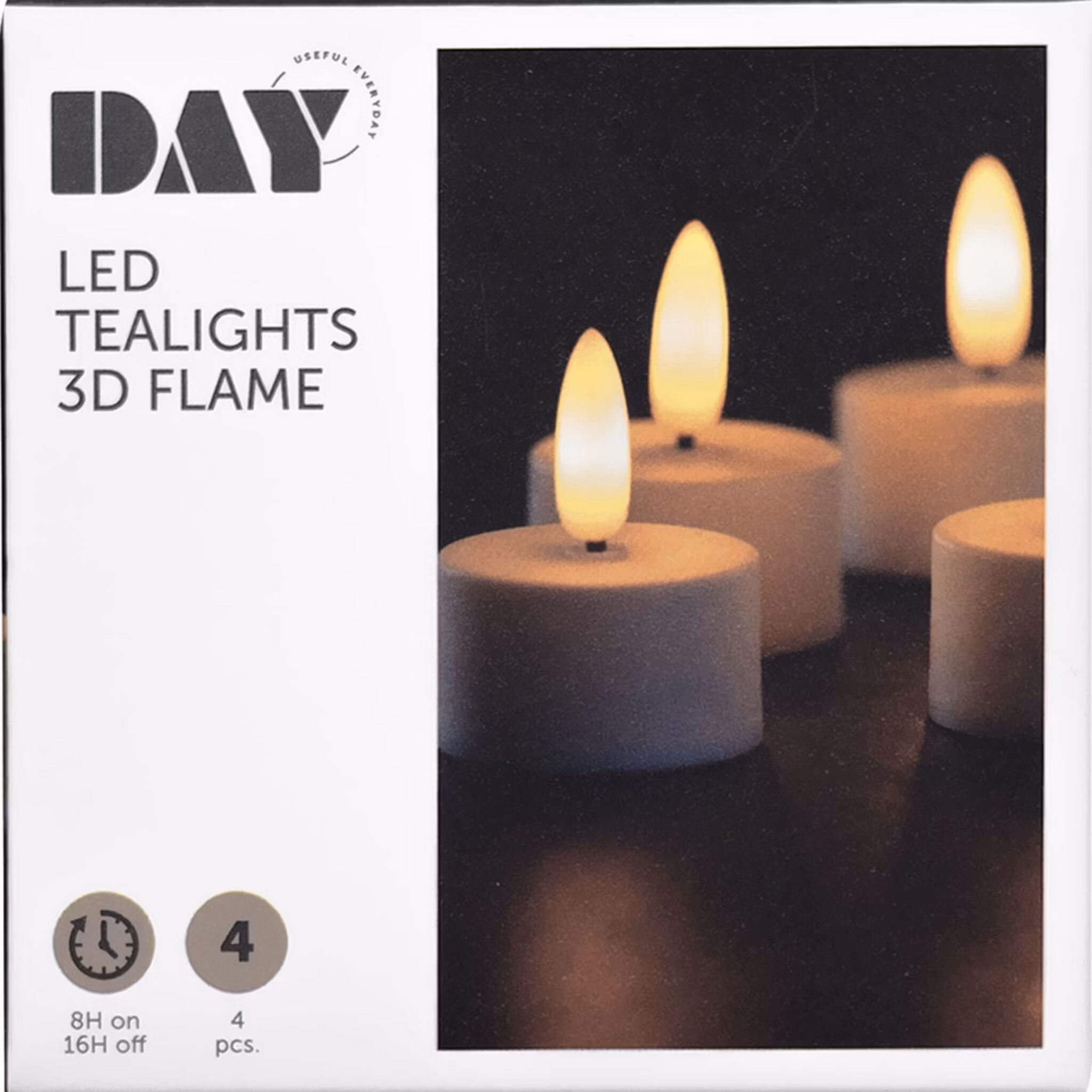 LED-värmeljus med timer. 4 p batteridrivna ljus som lyser 8h och släcks 16h automatiskt. Perfekta för bröllop, födelsedagar och fest.