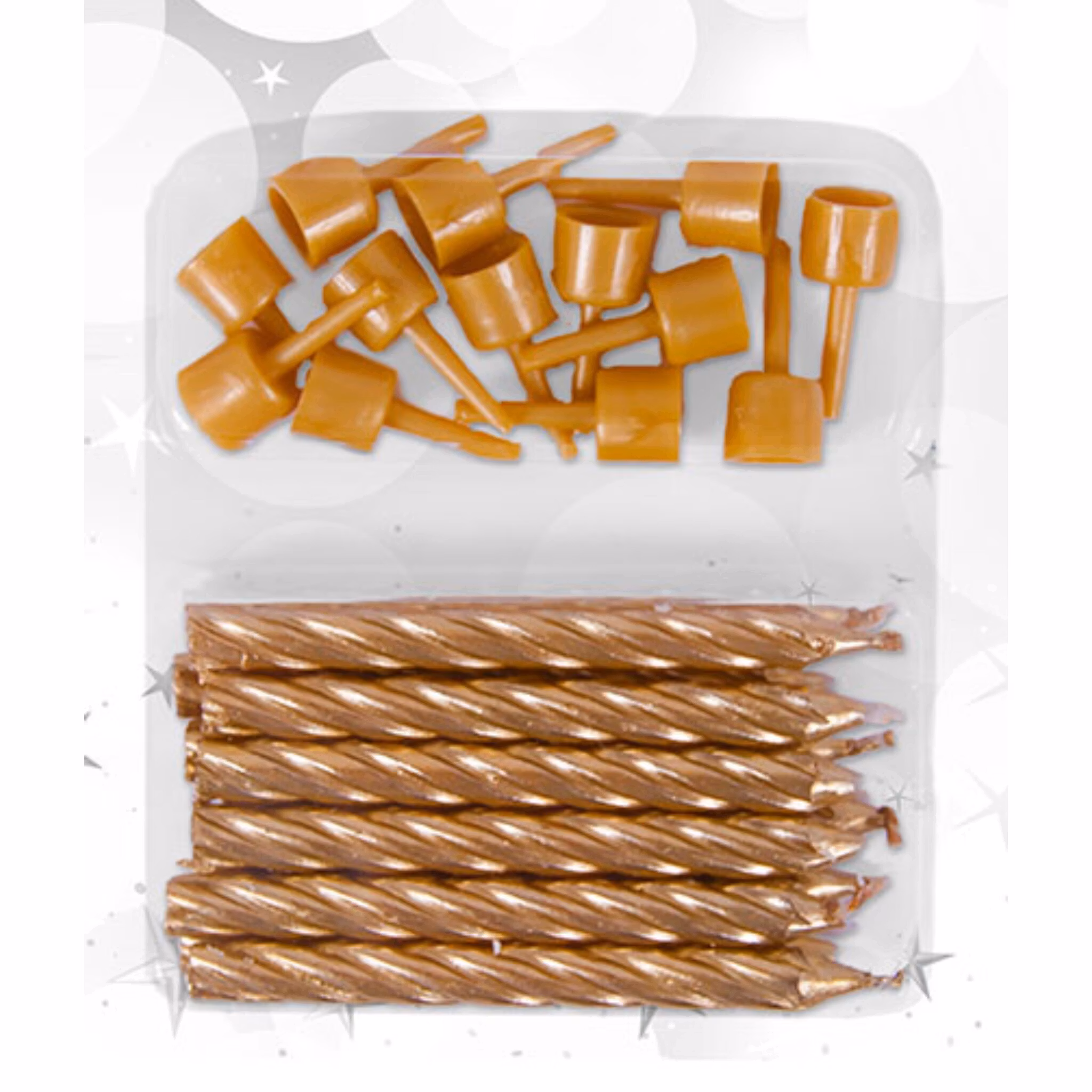 Ge tårtan en lyxig touch med tårtljus i guld. Perfekta för födelsedagar, jubileum, bröllop, nyår eller andra festliga tillfällen där du vill skapa en elegant stämning.