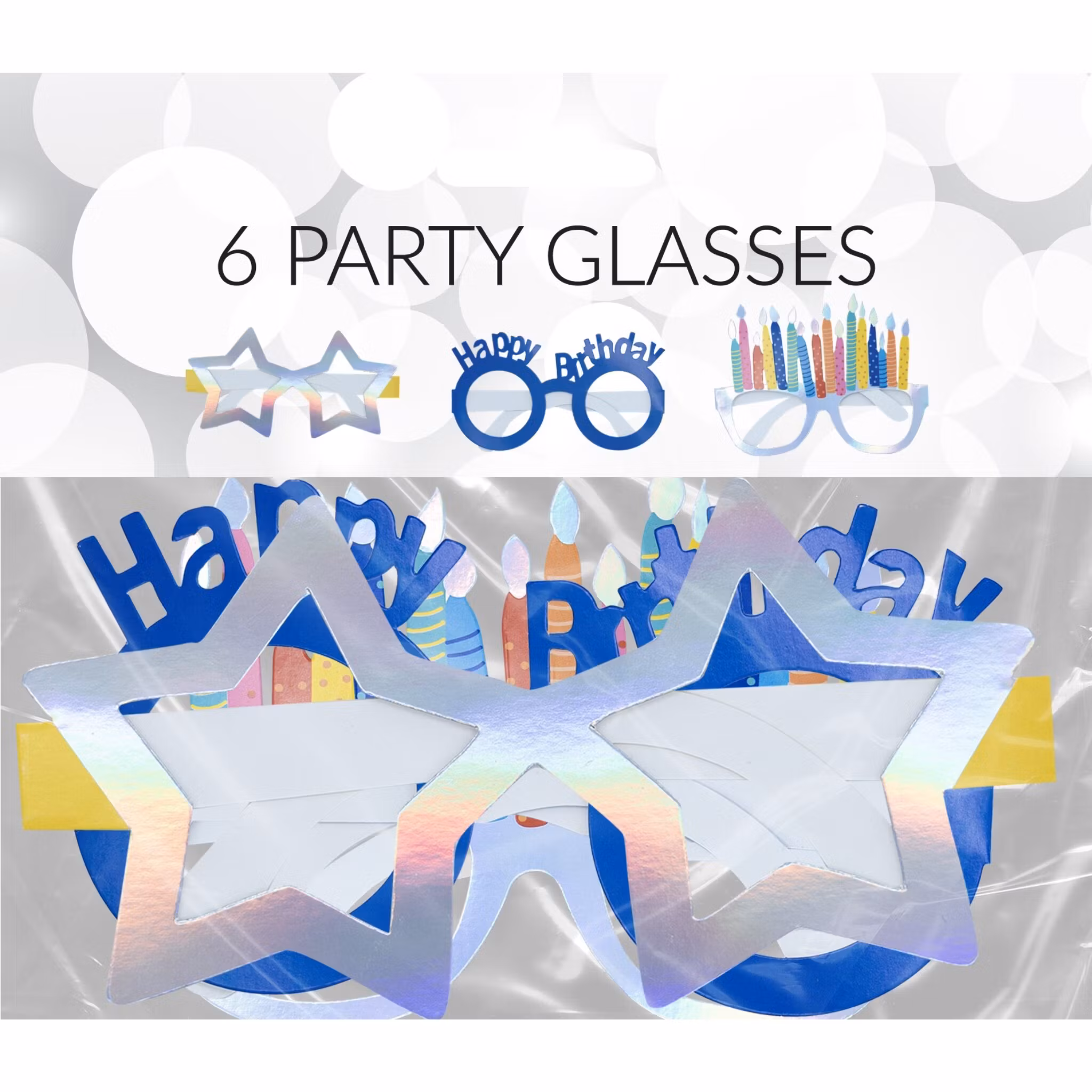 Partyglasögon 3-mix Birthday, 6 p. Färgglada pappersglasögon med roliga motiv. Perfekta för födelsedagar, kalas, bröllop och fest.